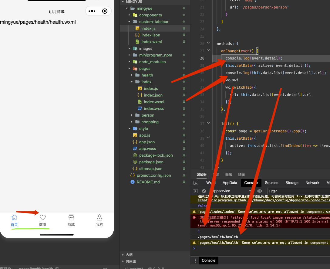如图,我首页点击健康,跳转的页面是健康,索引也显示1,但是tabbar上面的图标却没有跳转,其他界面也是,有的时候tabbar上面的图标乱跳