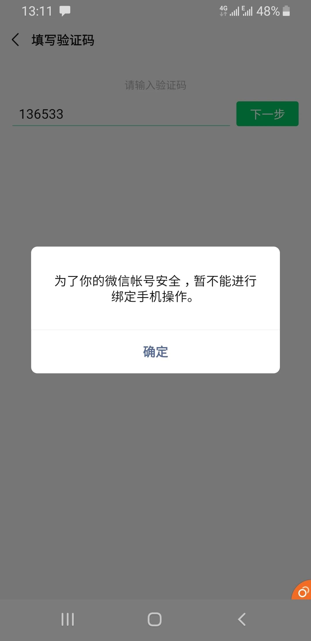 为了你的微信账号安全,暂不能进行绑定手机操作