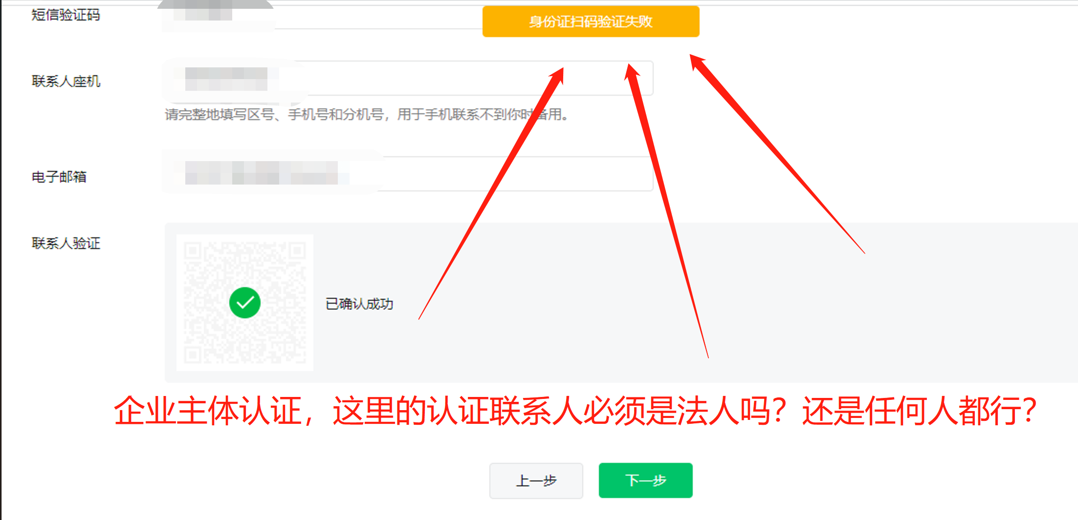 企业主体认证,在认证联系人这块一直验证失败,请问这里必须填法人吗?还是任何人都可以?