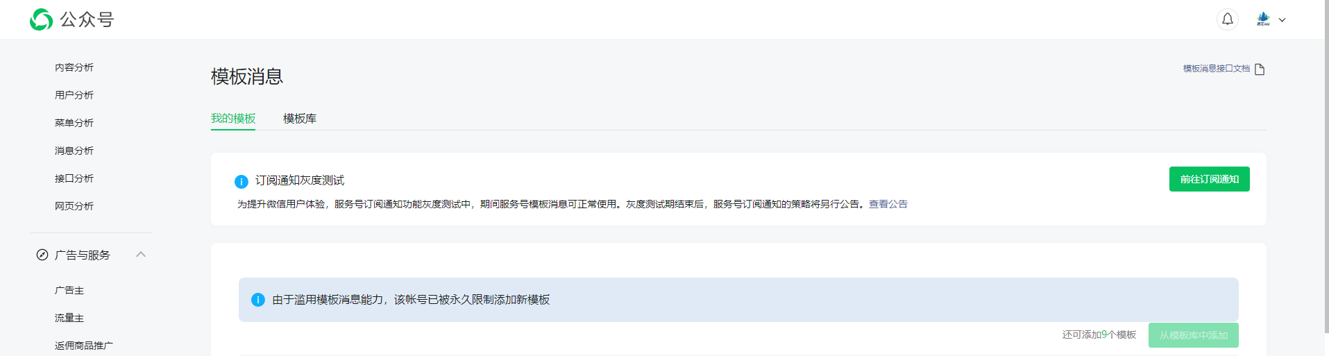 您们好!公众号“湛江市民保”因发送消息模板被判定为“过度营销”违规,导致新增模板消息功能在2021年12月12日起被永久限制添加新模版。