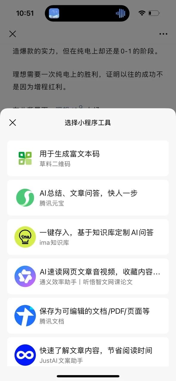 我们计划开发一款AI对话小程序,并配备知识库功能。我们期望实现用户能够通过“用小程序工具打开”这一便捷操作,将“文件/公众号文章”一键上传至小程序的知识库中。目前遇到的难题是,不清楚小程序需要开通哪些权限才能实现此功能,在“选择小程序工具”中展示我们小程序。我已花费两天时间查阅相关文档,但仍未找到确切解答。