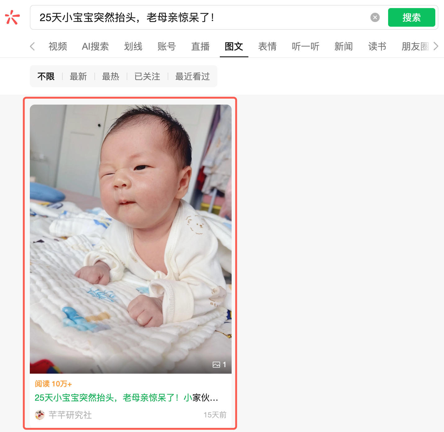我的问题是公众号能搜到,文章能搜到,就是图文不行