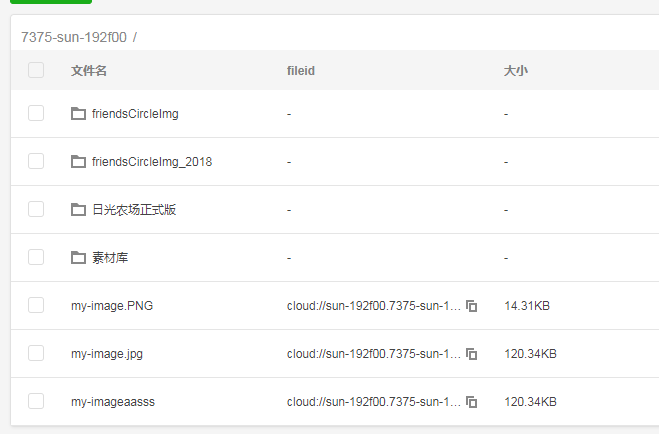 }).catch(error => { // handle error})调用成功后,所有的文件都被放在里云储存的根目录,如图下面3个图片文件 :