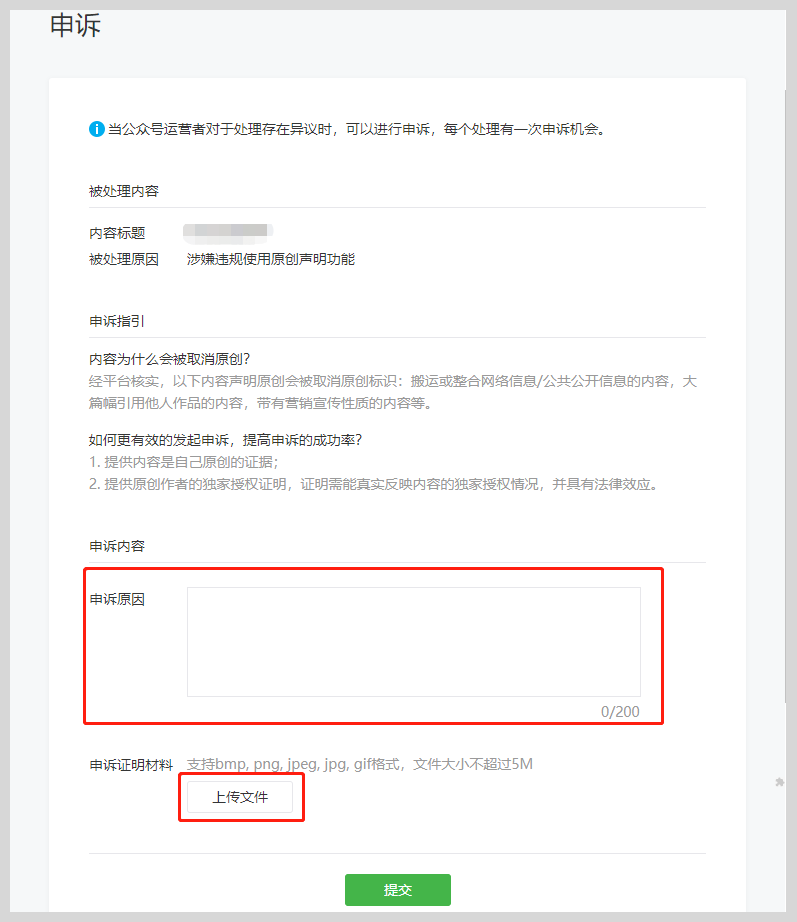 (二) 原创功能申诉