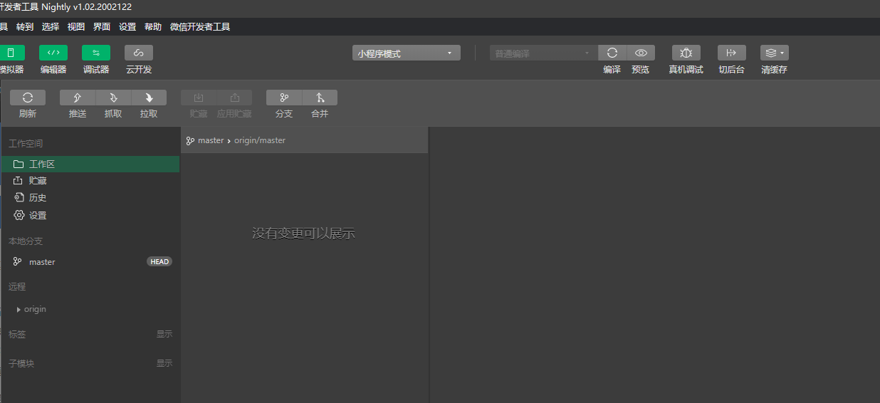 微信开发者工具Nightly不能打开版本管理,从更新到Nightly后就一直这样。