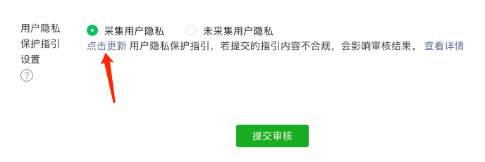如果小程序已经发布上线了,建议在代码提审页面底部更新隐私,审核通过发布上线即可生效。