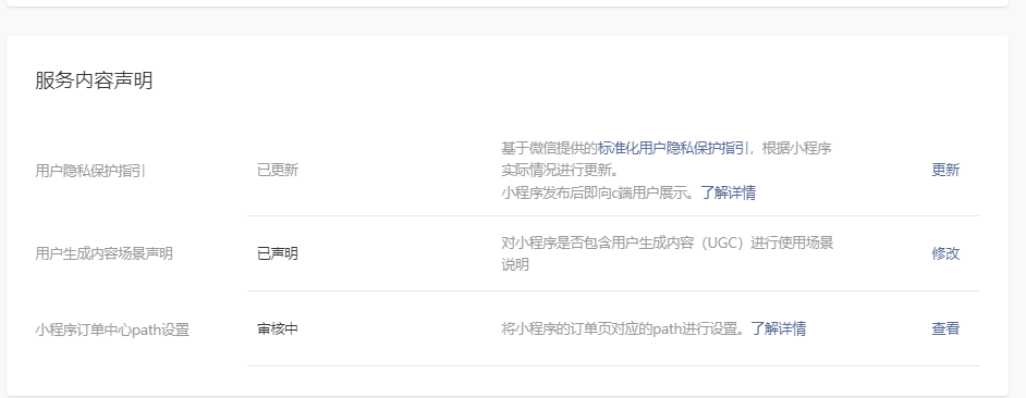 后面小程序发布上线,有现网版本就可以在设置页面更新隐私了。