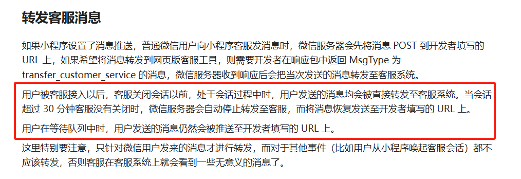 微信小程序客服消息-接收消息和事件,服务器接收到的只有客服未接入之前客户发送的消息,后续的聊天消息都没有推送到服务器,是只有客服未接入之前客户发送的消息才会推送到服务器吗?