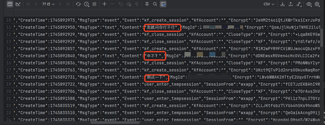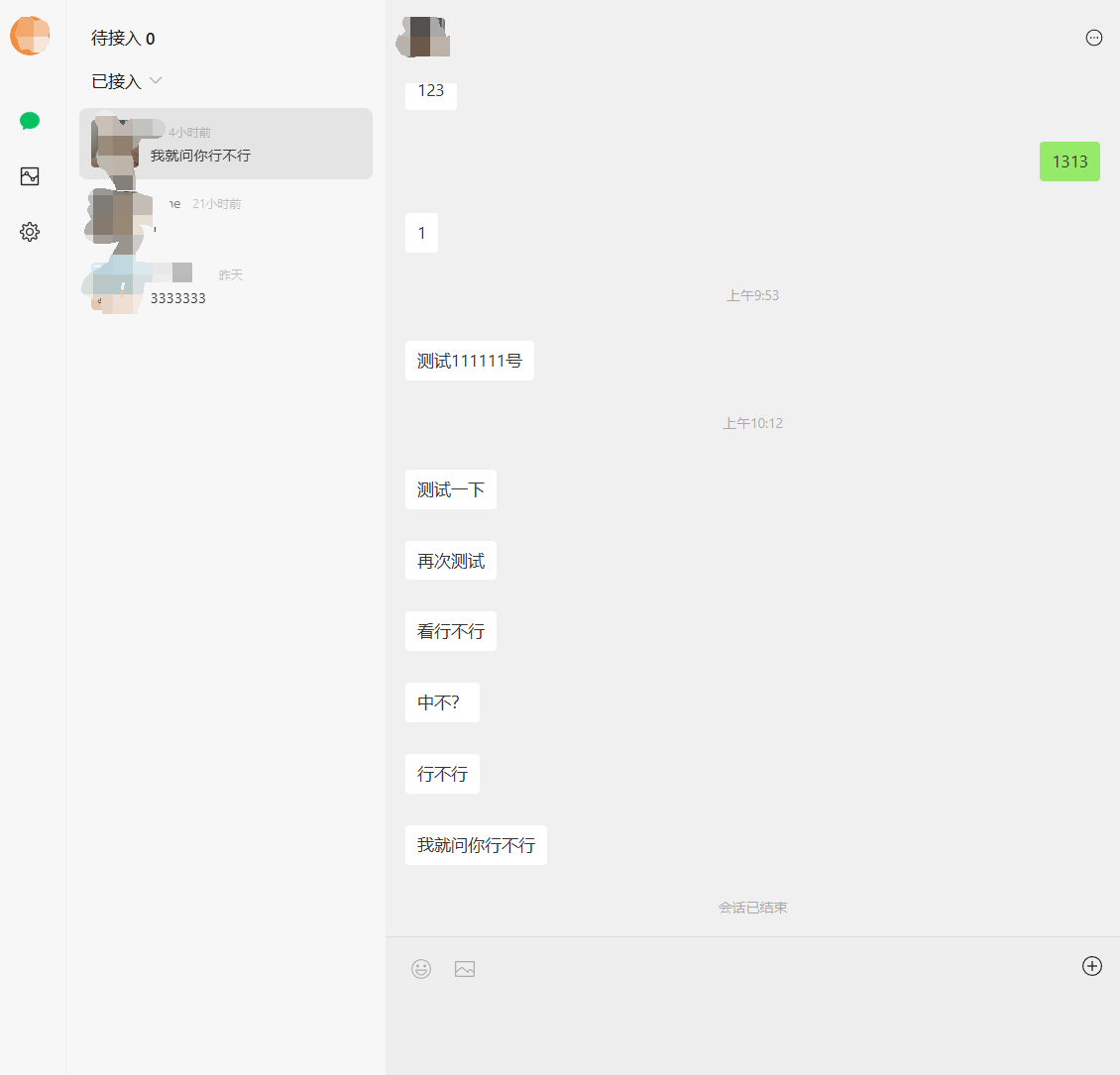 只有三次结束客服通话之后,客服再次接入之前的消息推送到了服务器,中间的聊天记录都没有推送到服务器