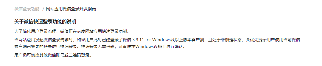 京东PC端网站点击微信登录,就跳转到微信登录界面,当PC微信登录状态下,即可实现快捷登录,但是我自己开放平台中的网站应用,就没有这个效果呀,还是需要扫码,请问是需要修改什么设置或者代码才能实现快捷登录吗?