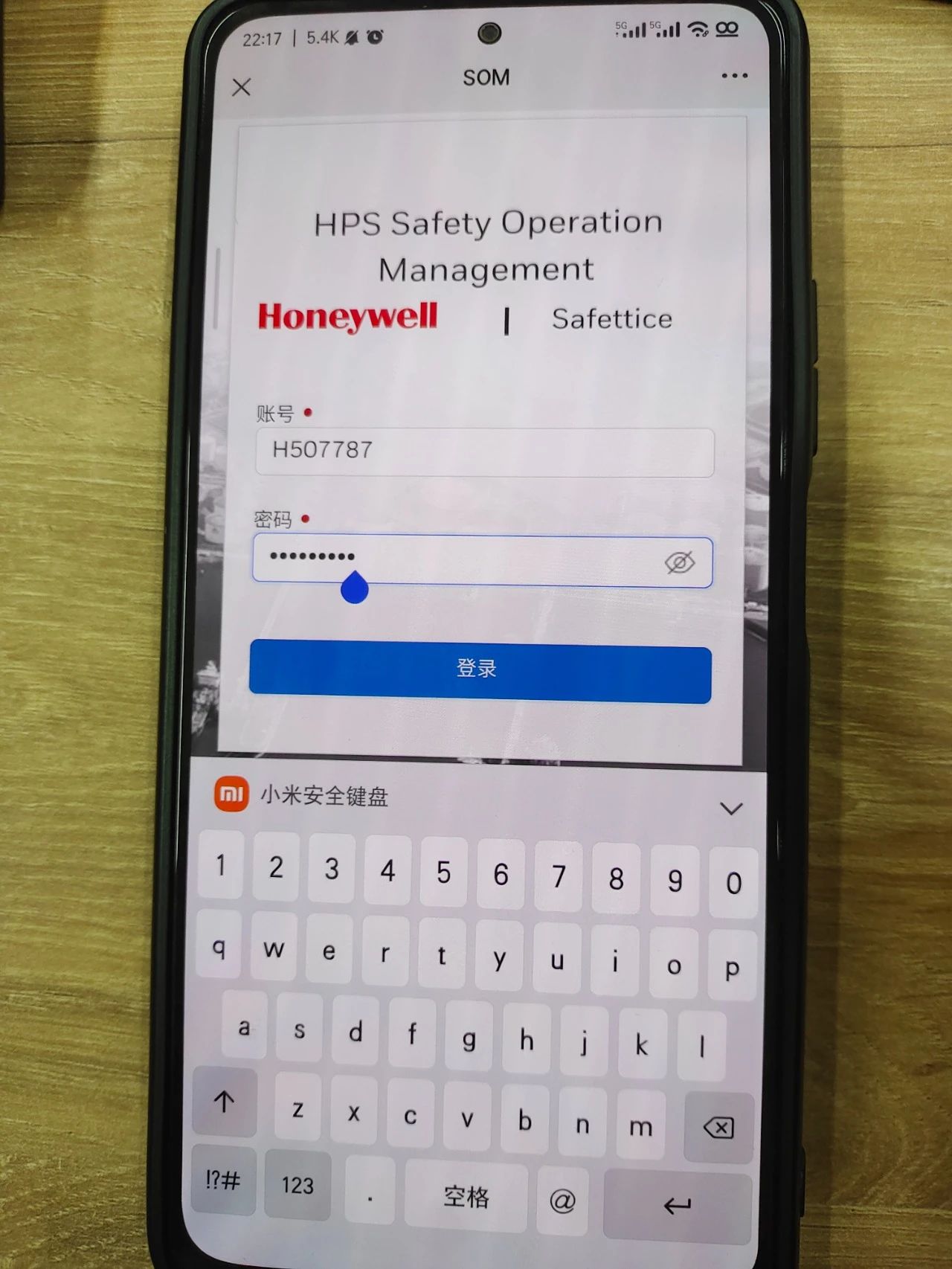 1、点击密码输入框框,键盘弹出,点击登录