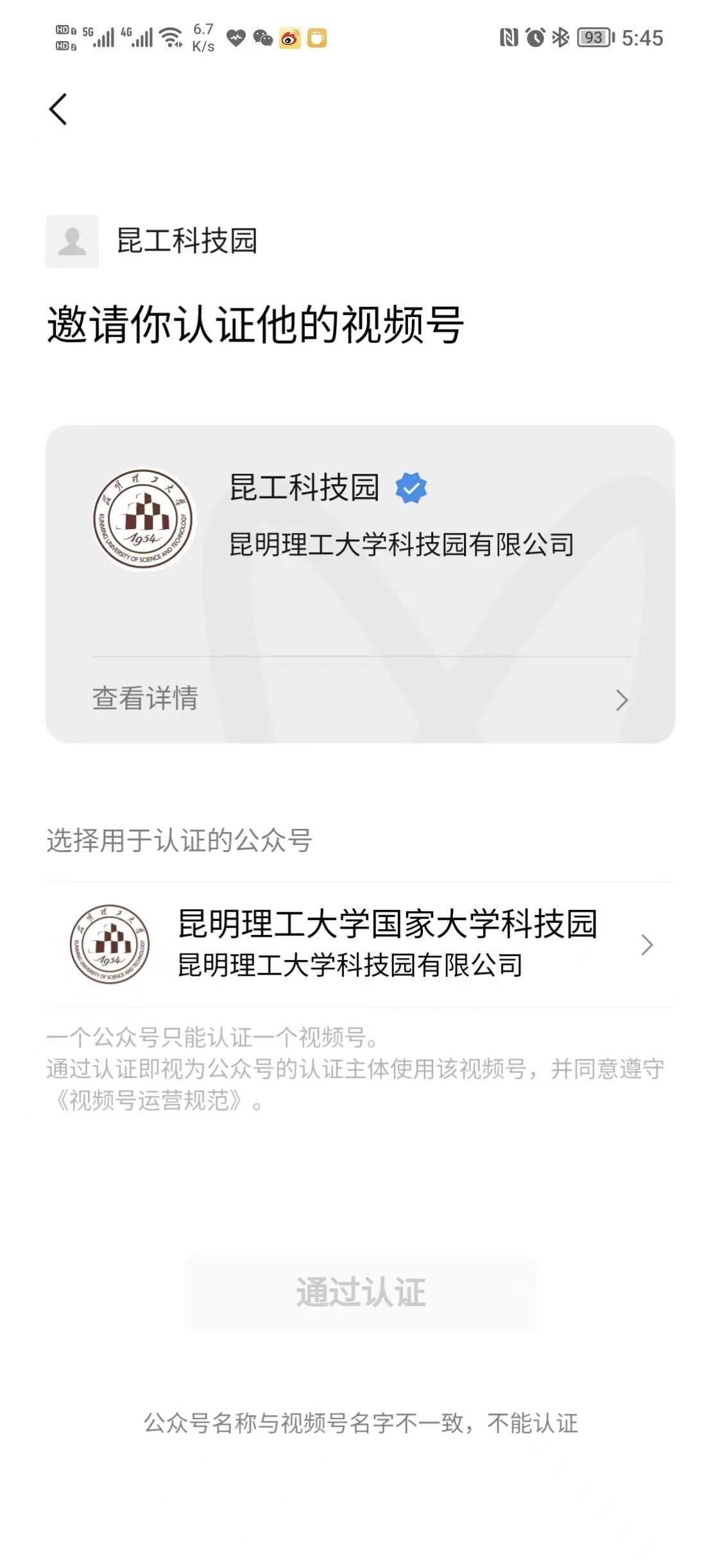 【问题描述】: 无法认知视频号,公众号名称字符数在视频号里面显示超字符数,无法更改视频号名称跟公众号名称一致