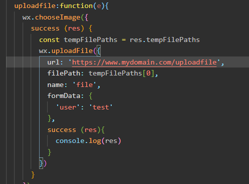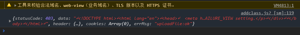 在使用wx.uploadfile向服务器访问时会显示状态码403,截图如下: