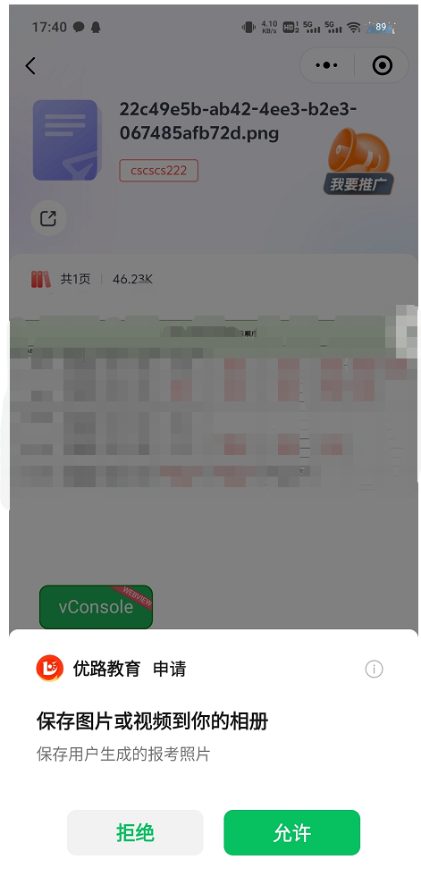 但在实际使用中发现,当用户点击保存图片按钮时,会触发“保存图片或视频到你的相册”授权,如用户拒绝授权,再次点击保存图片按钮时,不会再触发弹窗。