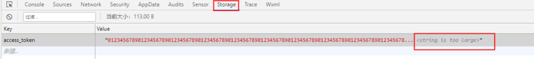 经在开发者工具中测试,Storage中存储Key时,Value的最大长度为100个字符(且文档里也没有说明。),当我想在这里存储用户的详细信息(包含用户资料和权限的加密数据)时,长度肯定是超过100了。