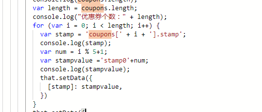 使用js特性:coupons[i]['key']=value