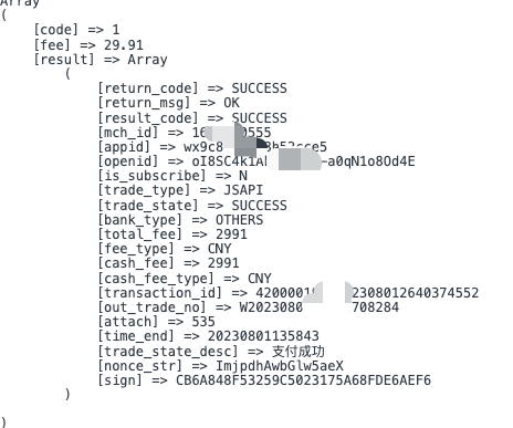 下图是微信查单接口返回内容,对照后 订单号和openid完全吻合,所以没明白为什么还是报错2011,麻烦官方人员帮忙看看是什么问题?