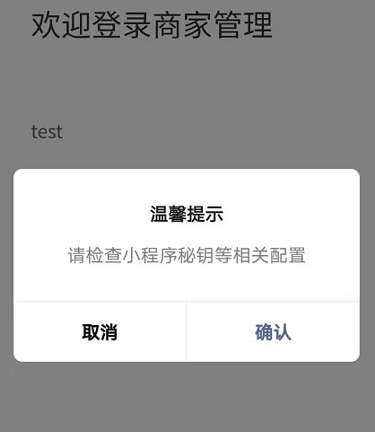 但是转发给部分用户,就会出现:请检查小程序密钥相关配置的错误提示弹窗信息