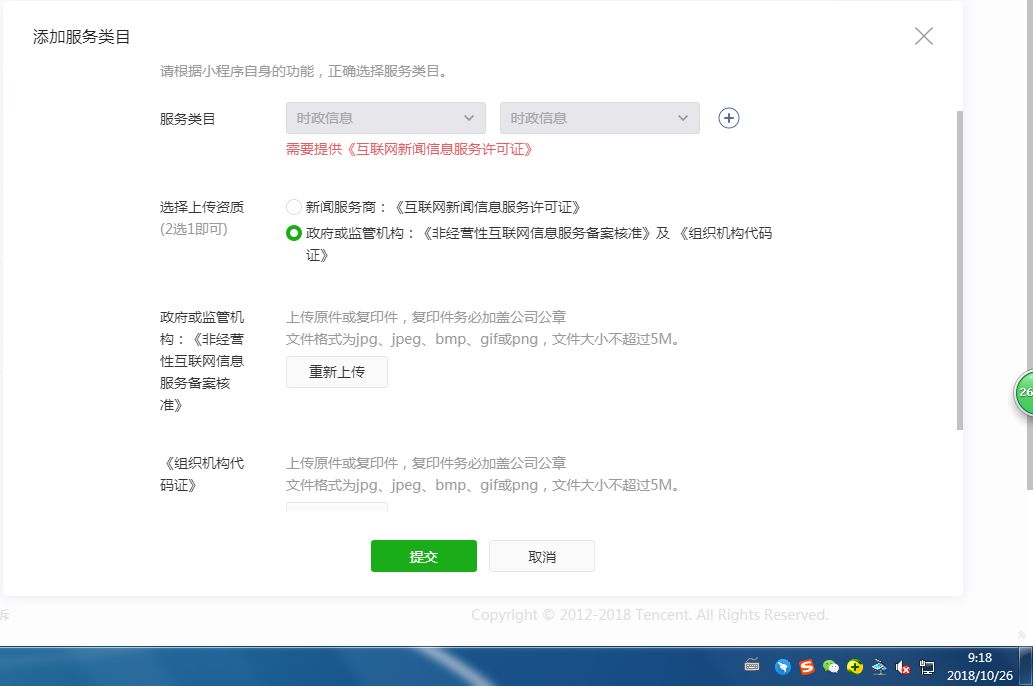 看上传资质的选项,不是说二选一即可么,我们上传了非经营性互联网和组织机构代码,两张截图,为什么还需要新闻服务许可证呢