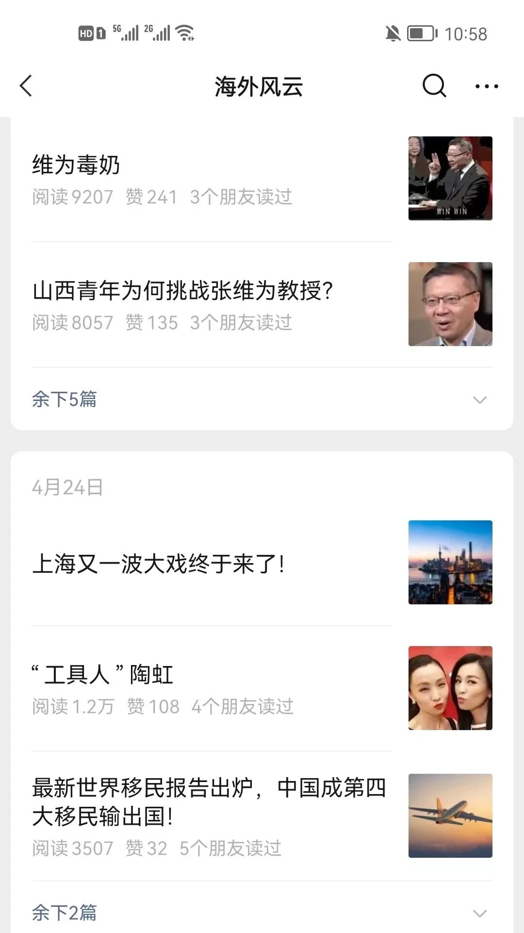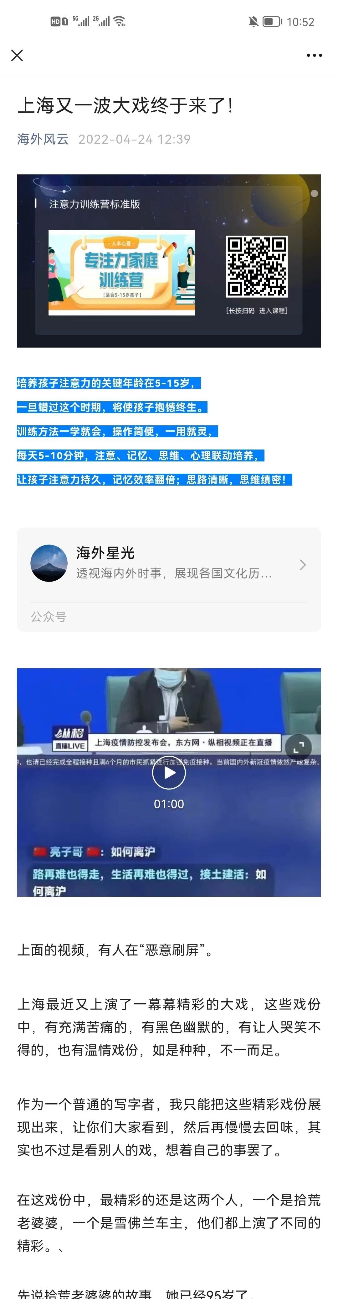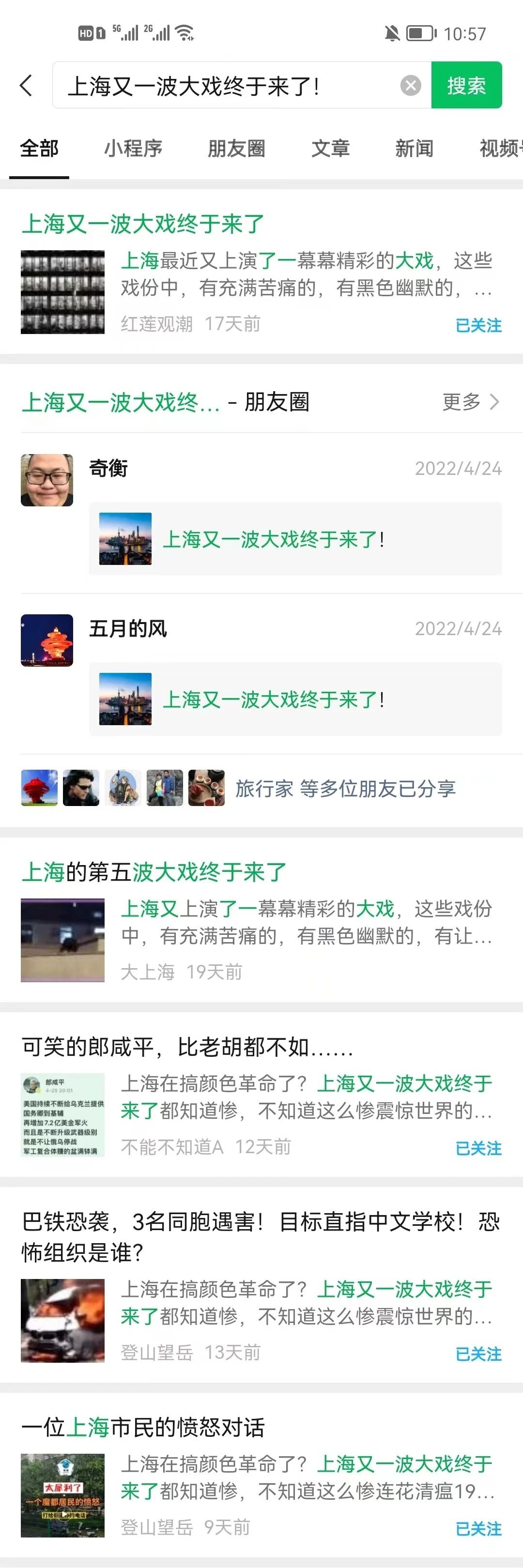 如海外风云公号2022年4月24日推送的一篇文章:《上海又一波大戏终于来了!》,就搜索不到。