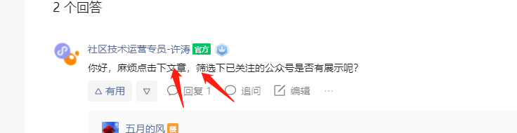 你好,麻烦点击下文章,筛选下已关注的公众号是否有展示呢?