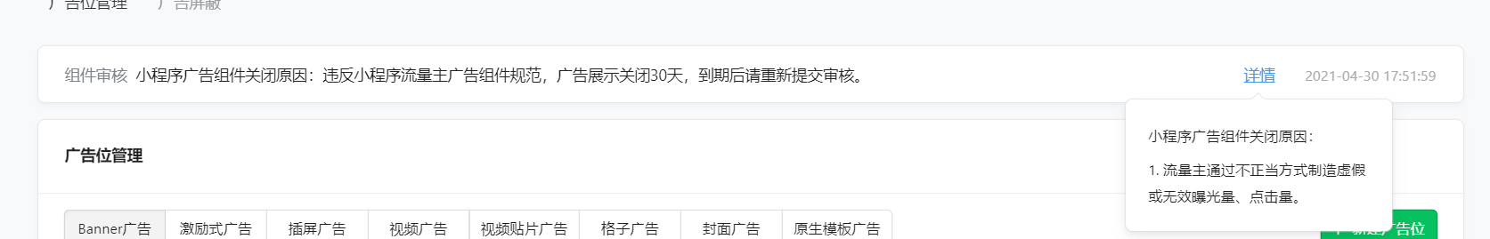 一个支付被封的正在申诉中,其他正常的为什么流量主会被封呢,之前申诉过说因为支付被封所以流量主也跟着被封了,但是这次为什么其他的小程序也同时被封了啊,能不能申诉一下,之前有同行用群控恶意攻击我们平台,可能会造成虚假曝光,但是我看流量主数据中心,还有我们用户列表,和次日访问人数是成正比的,说明那些用机器人刷的根本就没刷上,我们也没有从中间赚取收益。说到底我们不但系统被攻击了,流量主的钱也没了,到头来赔了夫人又赊兵,还请平台方从宽处理不要把钱都扣了好吗,谢谢。