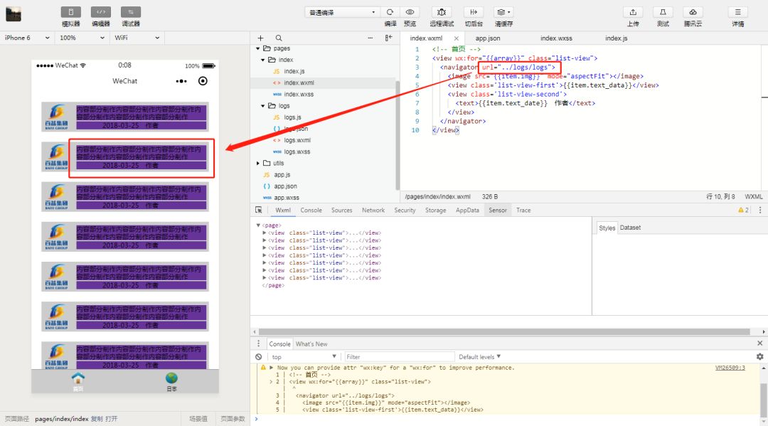 如上图,我使用小程序的navigate方式跳转页面,但是怎么也跳转不了logs页面,前两天我在公司实验的时候明明没有问题,只不过我那个页面是自己新建立的,不是默认产生的,有没有高手知道原因是什么??