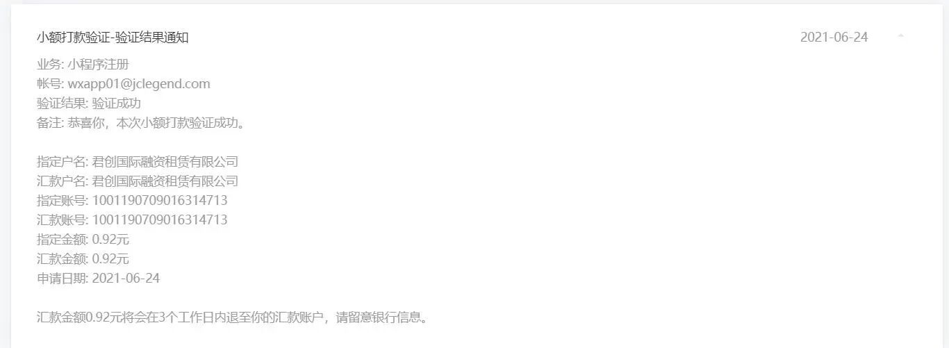 七月份注册的微信小程序,第一次打款账号不对未通过审核,第二次已经成功通过验证。两次收到的通知都是会在三个工作日内退回,我也是挺信任腾讯的,但是两个多月过去了,财务那边说没有这两笔的退款。一早上找了各种客服,都是自动回复,也没有实质性的解决这个问题。