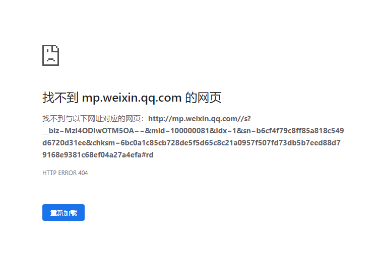 通过微信开放平台API获取公众号永久素材,得到的图文链接地址(http://mp.weixin.qq.com//s?__biz=MzI4ODIwOTM5OA==&mid=100000081&idx=1&sn=b6cf4f79c8ff85a818c549d6720d31ee&chksm=6bc0a1c85cb728de5f5d65c8c21a0957f507fd73db5b7eed88d79168e9381c68ef04a27a4efa#rd)无法在浏览器中打开是什么原因?