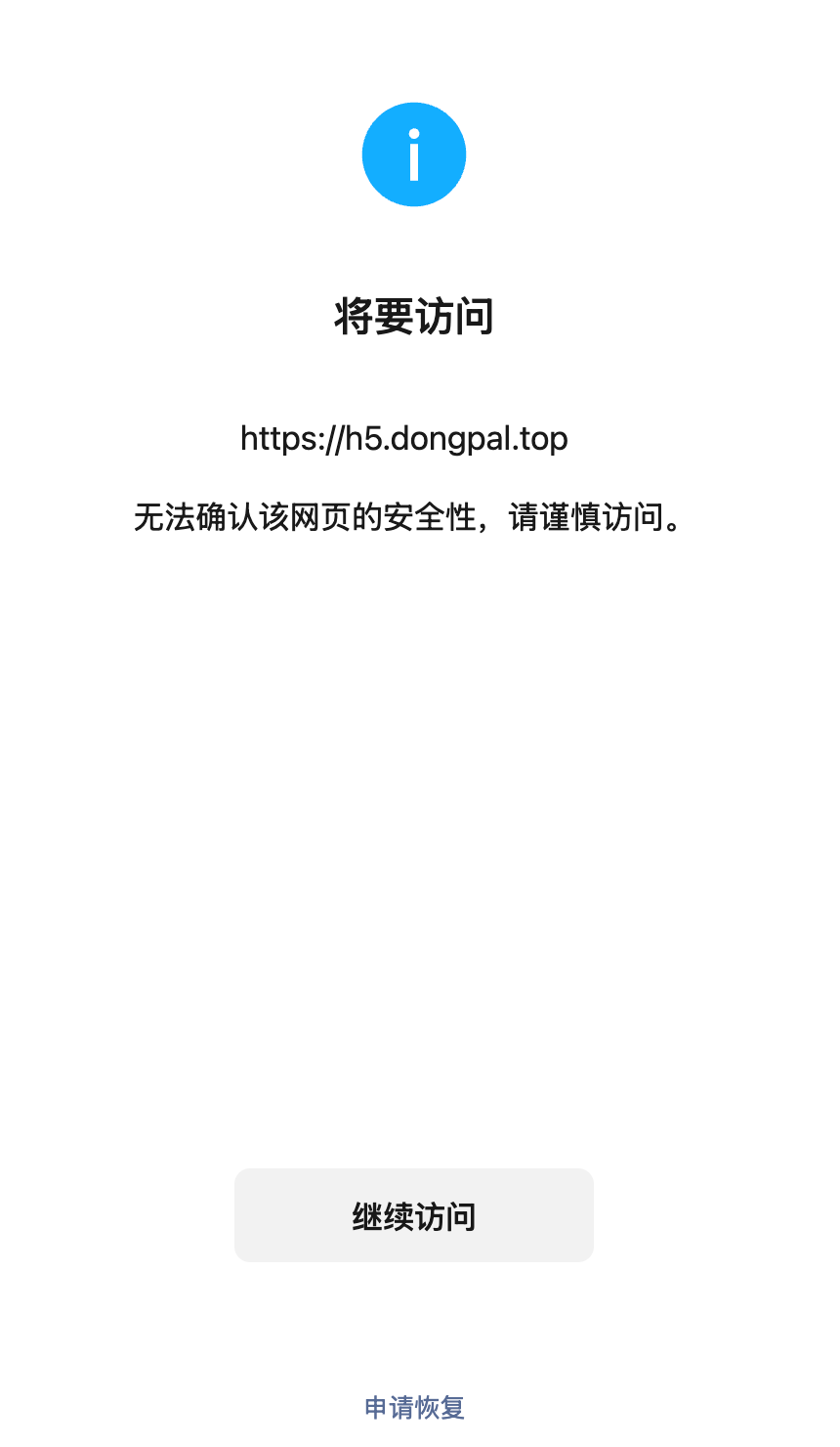 https://h5.dongpal.top/,@微信朋友圈&外链咨询 域名在微信内出现拦截,无法直接访问,需要解除访问拦截限制