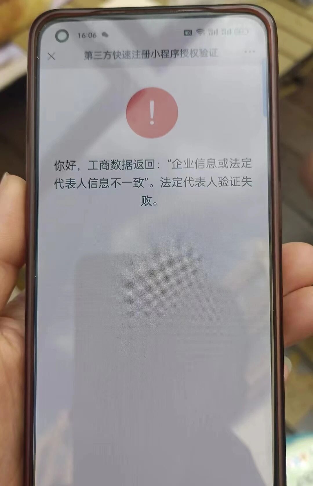 新注册的营业执照 工商数据返回:企业信息或法定代表人信息不止一致。法定代表人验证失败