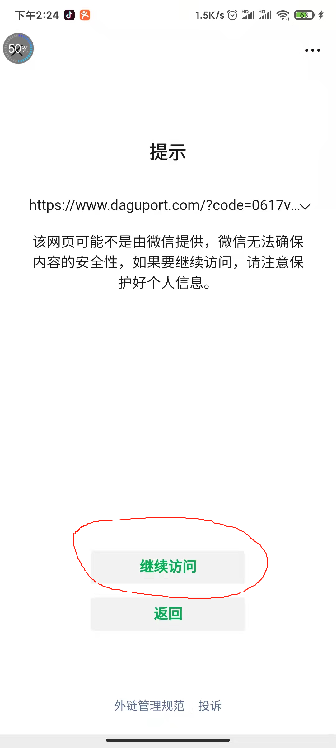 【问题】微信小程序,已经添加了业务域名,为什么访问该域名后还是提示“非微信官方网页,请确认是否继续访问”?是否需要将业务域名设为一级?