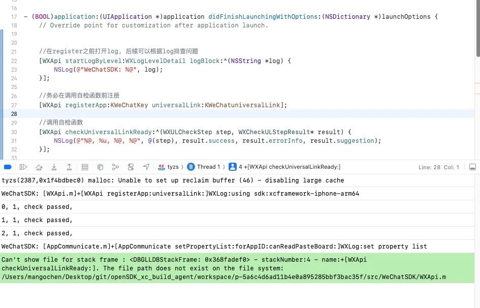 Thread 1: "+[WXApi genExtraUrlByReq:withAppData:]: unrecognized selector sent to class 0x100b30b88"