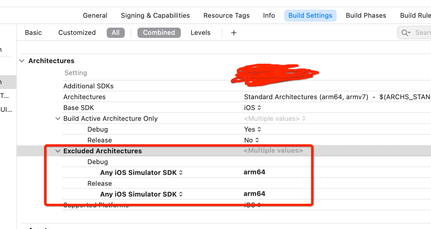 Excluded Architectures 下面加上 Any iOS simulator SDK ,值为arm64