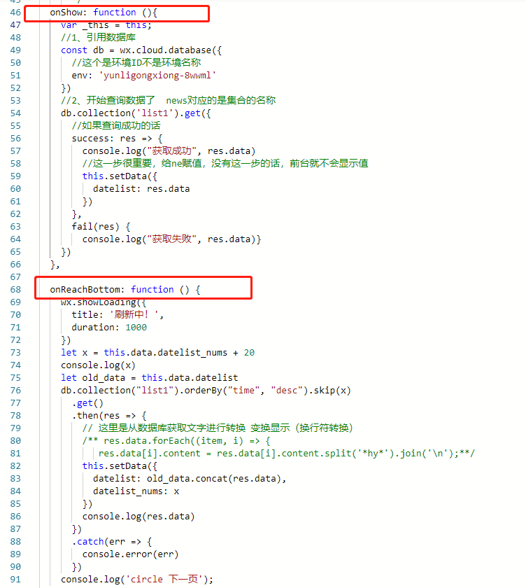 和tabBar默认首页用的一样的逻辑,不同之处首页的用的onLoad: function (options) ;这个页面用的onShow: function ();另外做触底刷新逻辑一样。首次进tabBar二页面就能正常加载之后能显示30条信息,切换到其它界面,再返回这个页面就显示20条信息,并且再触底也个更新不出来数据了。tabBar默认首页面就不会出现这种情况。请问怎样解决??