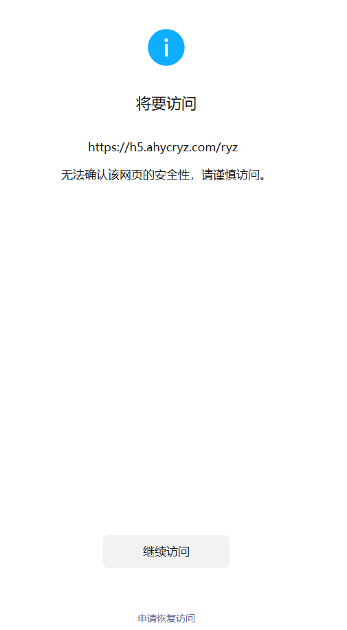 您好,域名(https://h5.ahycryz.com/ryz/)域名在腾讯云注册并备案通过,申请恢复也没用。服务器也在腾讯云,浏览器访问正常,我是网站开发者,访问时间如图微信访问网站出现“非微信官方网页,请确认是否继续访问”,经检查网页里没有不安全的内容,请核实后帮忙解除拦截,谢谢!网站内容不存在诱导分享的内容,请核查!