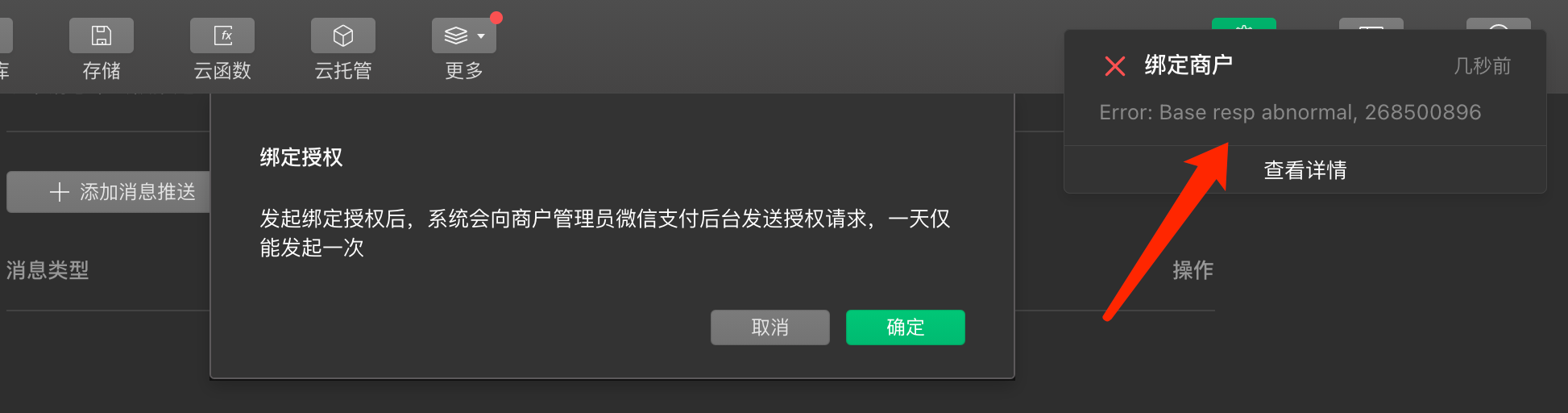 点击“授权”,报错Error: Base resp abnormal, 268500896,不知道怎么回事~~~