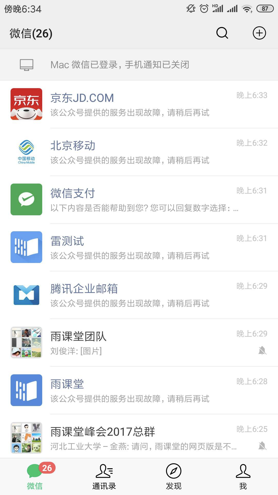 多个公众号服务出现不同程度的故障无响应的情况,目前尚未恢复(急急急):