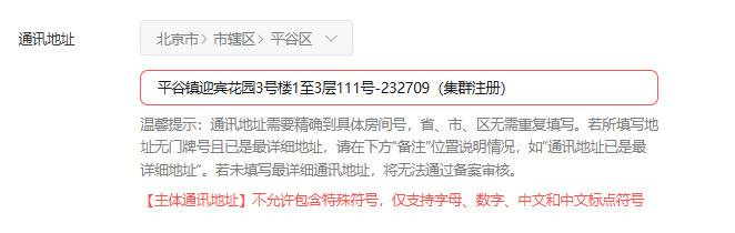 备案时获取的地址提交时报错,请官网看下如何处理?