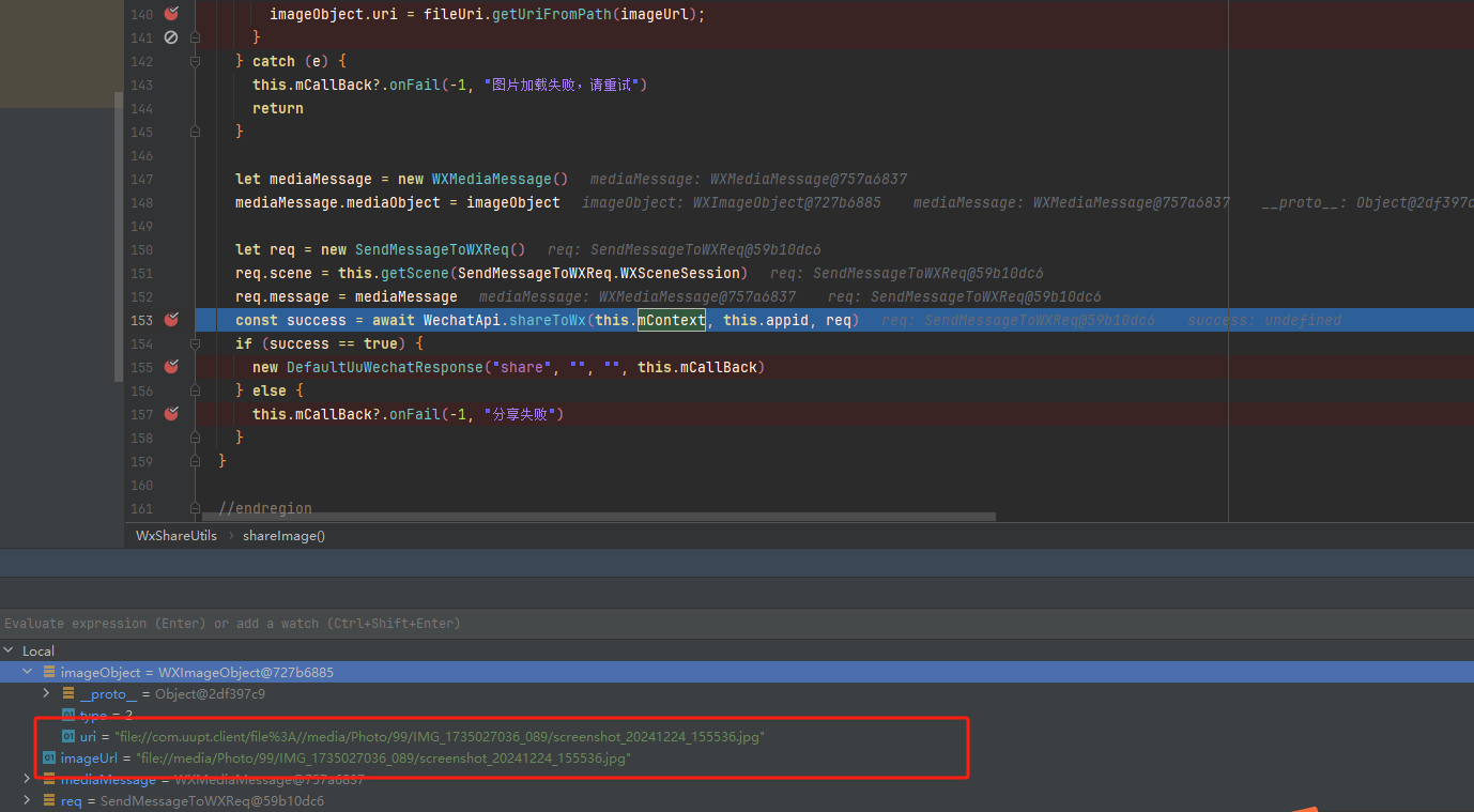 file://包名/data/storage/el1/bundle/entry/resources/resfile/share/image.png同上,也遇到了相同情况,resp回调里没有错误信息