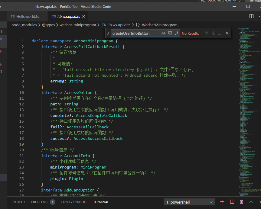 今天刚开始配置cocos creator, 因为vsc中一直不显示wx后的api所以npm init,npm install miniprogram-api-typings了。wx.getuserinfo什么的都看得到,但是就是没有wx.createUserInfoButton。package.json中版本显示是3.3.2