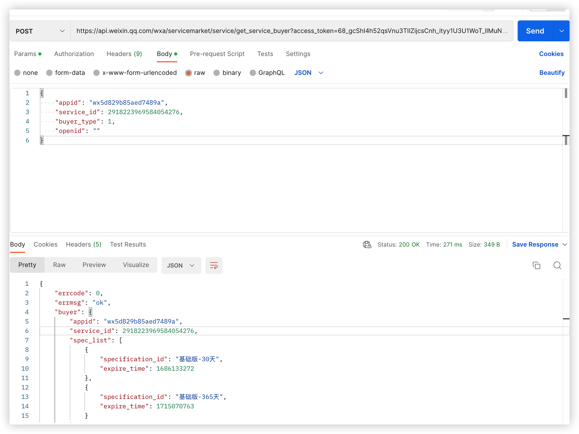 - 视频号小店,购买的套餐能正常查询到