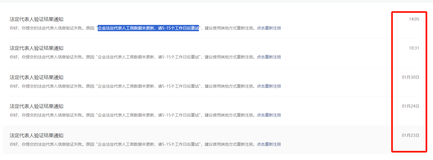 个体工商户注册服务号,营业执照1月22日下来,现在已经15天以上,还是提醒“企业法定代表人工商数据未更新,请5-15个工作日后重试”。