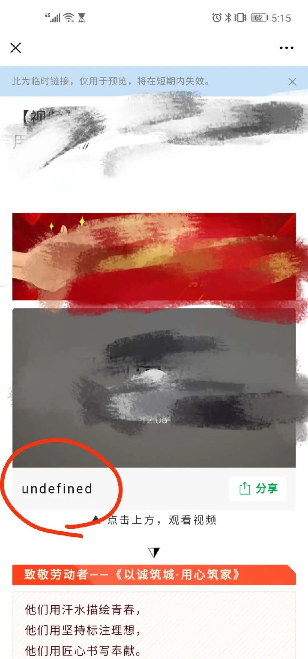 你好,该位置正常是显示视频标题,目前预览场景有问题已在排查修复中;群发后可正常显示标题,建议可以先群发。