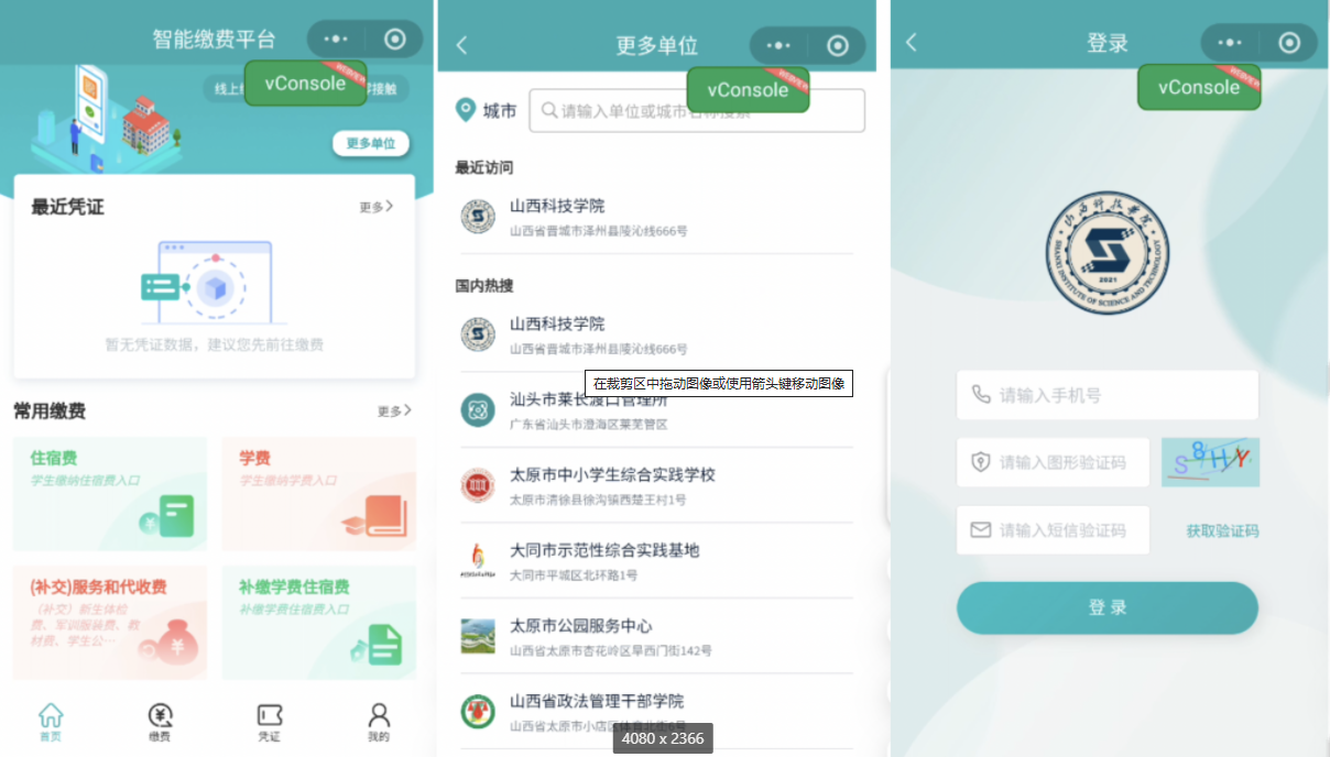 2.流程涉及账号登录或环境配置要求,【缴费】暂无法完整体验功能,请在提审页面填写有效账号及密码或上传小程序完整功能截图、录屏运行协助完成。