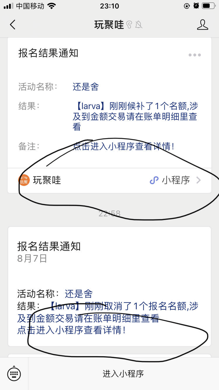 一直好好的。今天突然有些通知有小程序跳转按钮,有些没有。查看触发通知代码。除通知内容不同外,其余都相同。