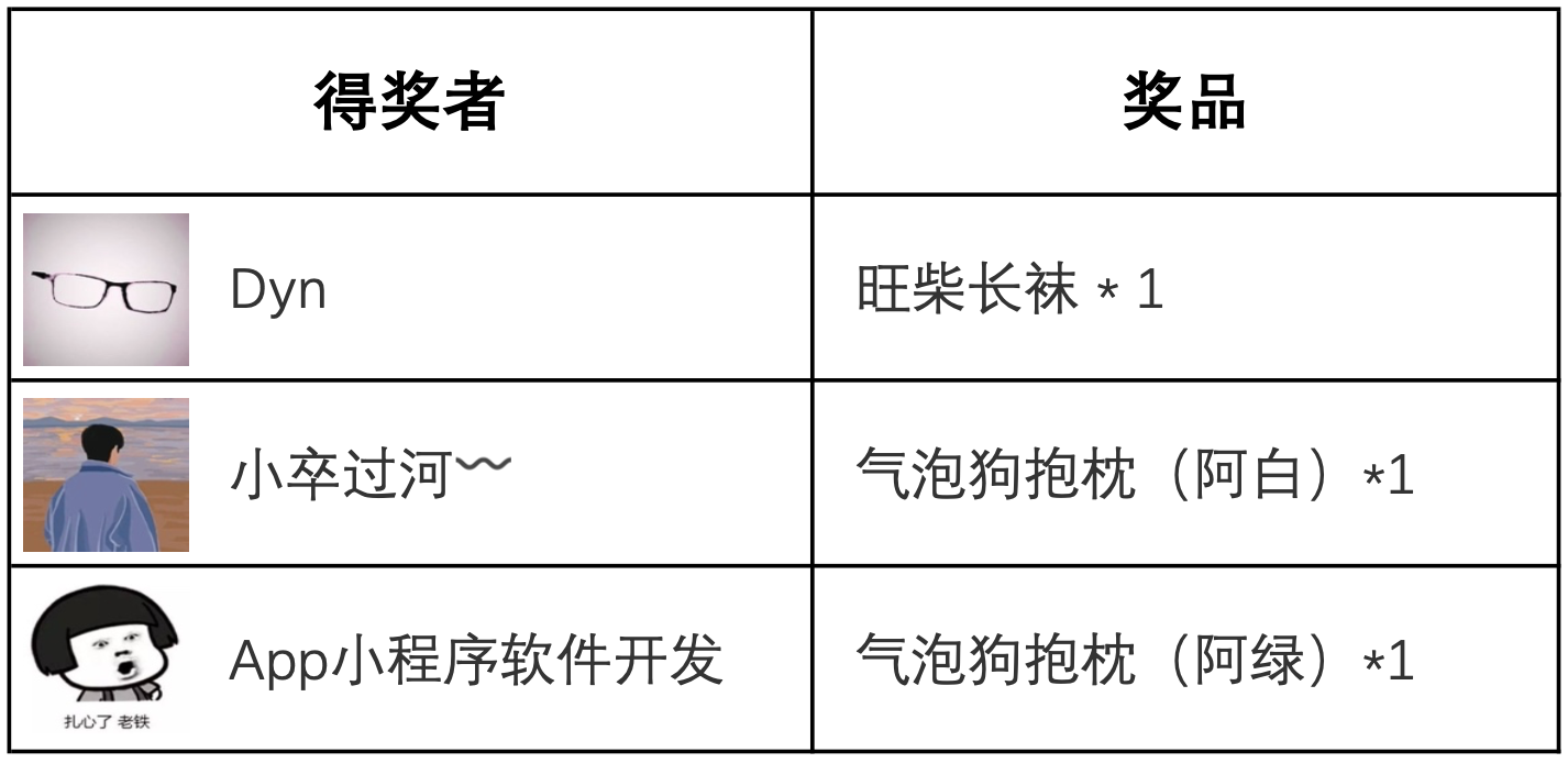 我们精选以下 3 位用户的回答并送出周边礼品一份。2023 年 8 月 4 日前,我们将通过社区私信联系以下得奖者确定邮寄地址,如一周内未收到回复(即2023 / 08 / 11 0点前),视为放弃奖品。