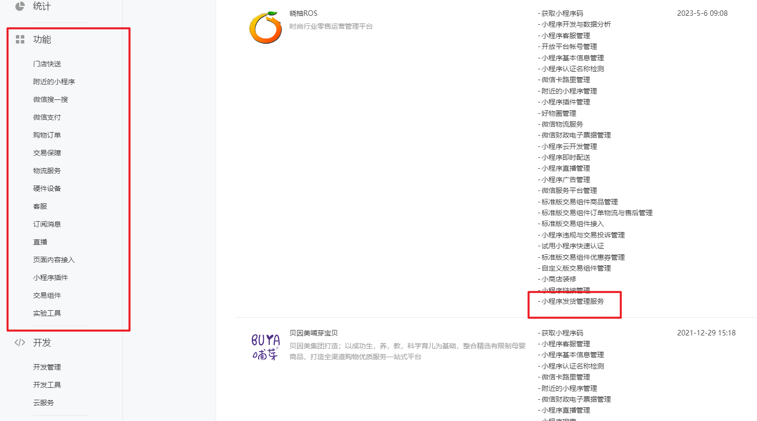 https://developers.weixin.qq.com/doc/oplatform/Third-party_Platforms/2.0/product/miniprogram_authority.htmlhttps://developers.weixin.qq.com/doc/oplatform/Third-party_Platforms/Authorization_Process_Technical_Description.htmlhttps://developers.weixin.qq.com/miniprogram/dev/platform-capabilities/business-capabilities/order-shipping/order-shipping.html