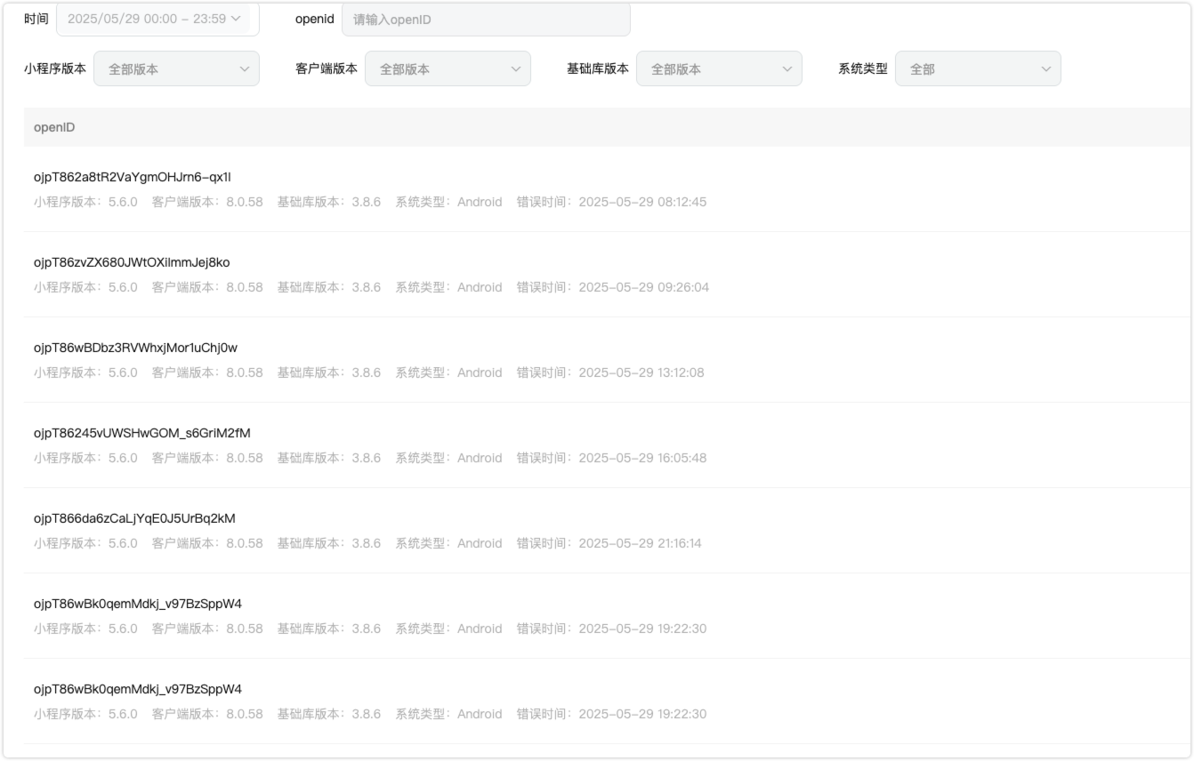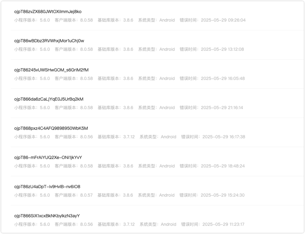 基础库 3.8.6 疯狂报错,集中在 Andorid 版本,有用户反馈小程序卡顿、或者卡死、或者闪退。后台的JS错误,在 5.31 - 06.03 呈现上升趋势。而我们的小程序在此期间无任何更新。