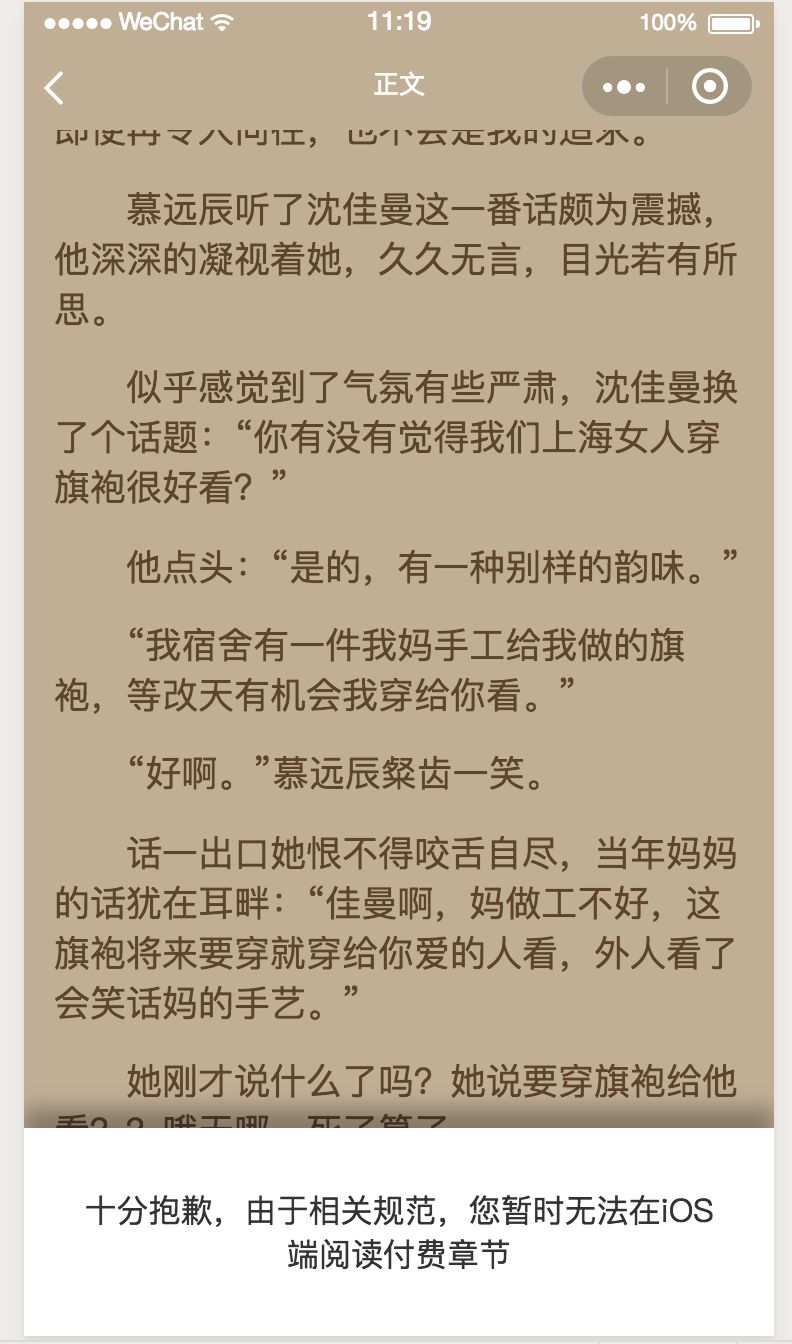 我们IOS端没有任何的支付接口,遇到付费章节的文案是【十分抱歉,由于相关规范,您暂时无法在iOS端阅读付费章节】 这样子也不行吗?之后并未引导到其他地方。大大明鉴。难道是连“付费”字眼都不能出现吗?
